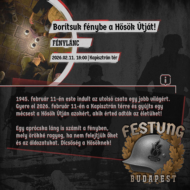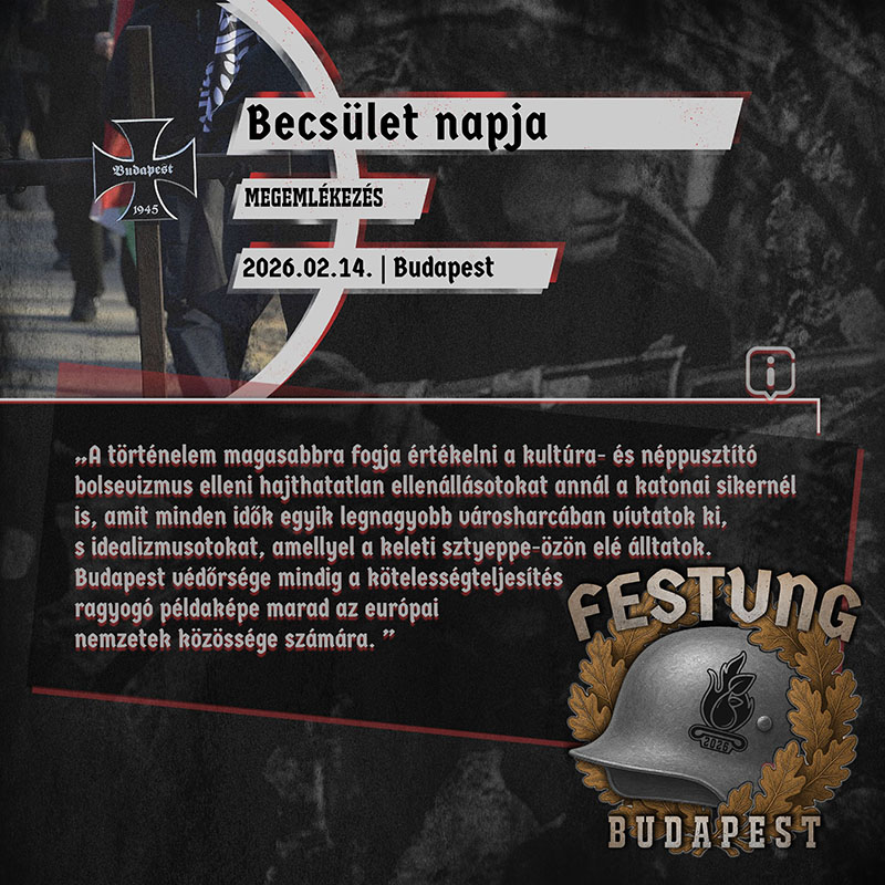 In 2026, we will once again commemorate the Heroes of Budapest, who, true to their oath, chose the breakout over surrender. The commemoration and the concerts will be held on private property somewhere in Hungary on the aforementioned dates, taking into account the events of other organizations. The names of the bands will only be partially public, as ensuring the unhindered travel of foreign bands remains a serious challenge every year. However, we can already state that we will surpass the musical lineup of previous years. We will share the names sequentially as soon as we deem it safe to do so. Furthermore, we are making serious efforts to minimize the required donation/support amount. Please mark the date in your calendars now, and follow our official channels for more information, as we will be continuously updating you!